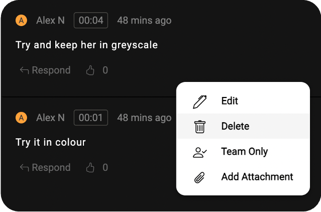 Be it PDF, image, video or an HTML file, you can delete comments made only by you. Mouse over a comment to see the ellipsis (three dots / more icon). Click the ellipsis to get options to Edit or Delete the comment.