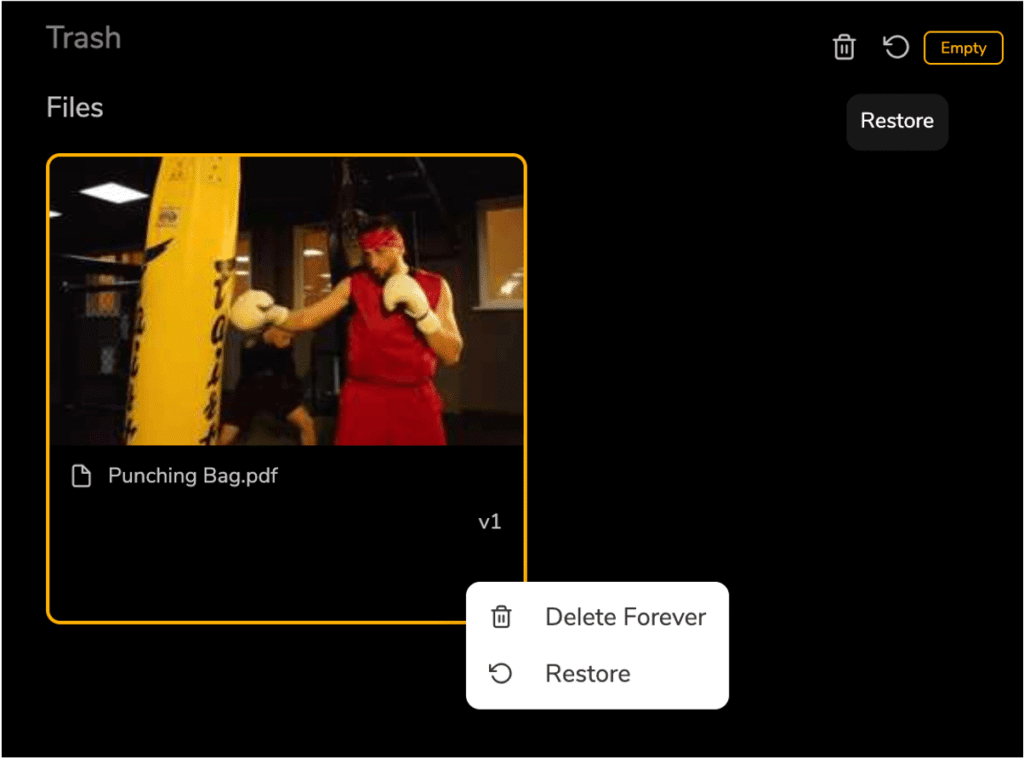 If you deleted a file, it will be in your Trash. No, don’t look at the bin in your office or room. Go to the Trash menu in the right bar, select the file(s) you want to retrieve and click the Restore icon in the top right corner. Or simply right click the file and select ‘Restore’