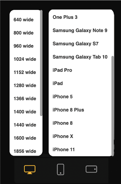 Desktop mode gives you a list of screen resolutions to see how the page looks on different screen sizes.