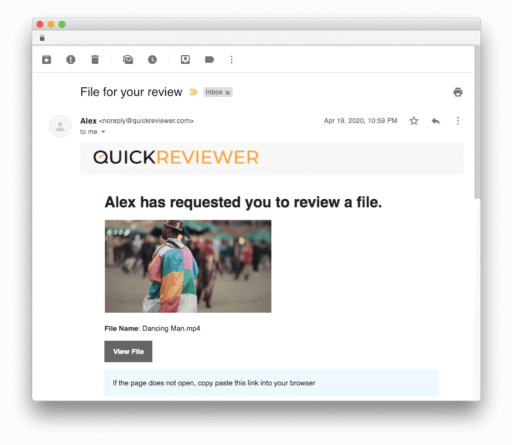 An email is sent to all reviewers with a link to the creative allowing them to give feedback. When reviewers add comments, emails are sent to the file owner so they know what changes have been requested.