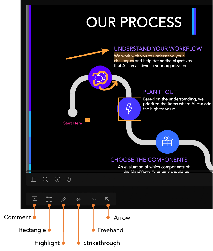 While viewing the file you can make comments and respond to the given comments. You can also highlight or strikethrough the text and compare file versions with each other.