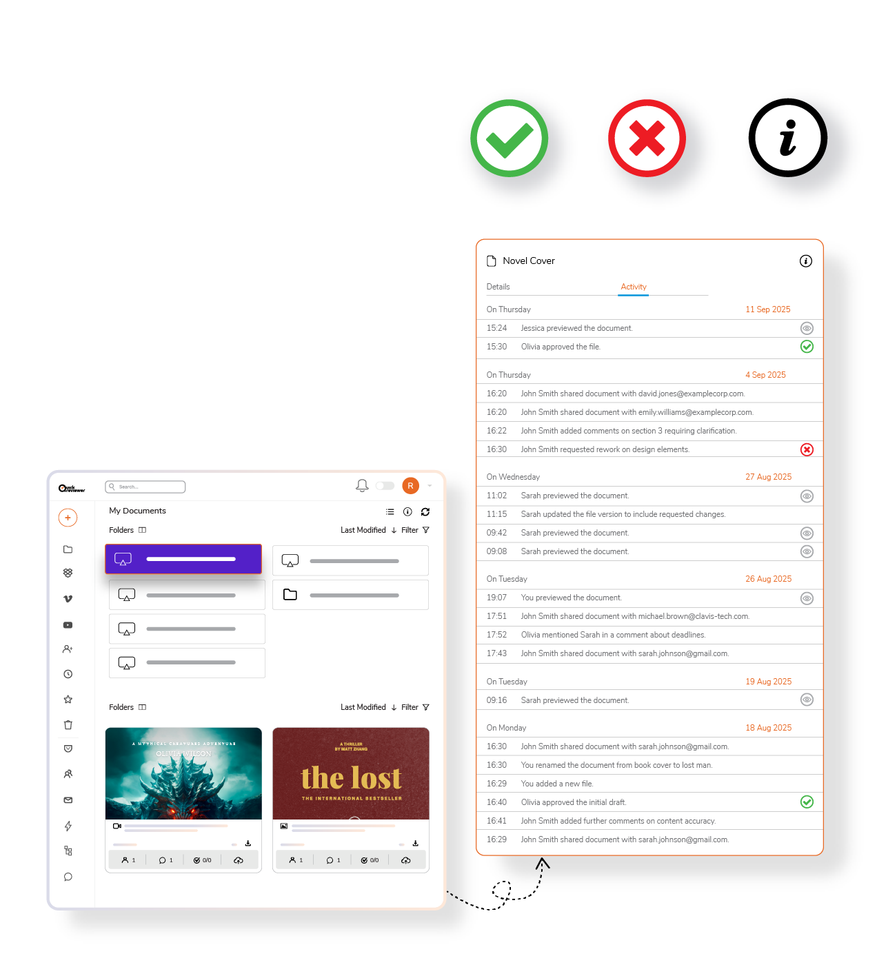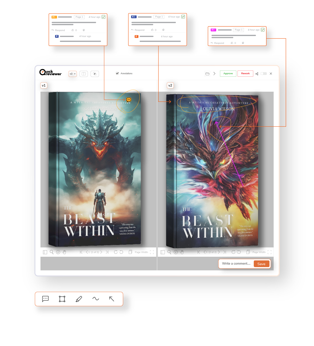 Manage the entire lifecycle of your cover designs, from conceptualization to final, print-ready files, with clear versioning and feedback.